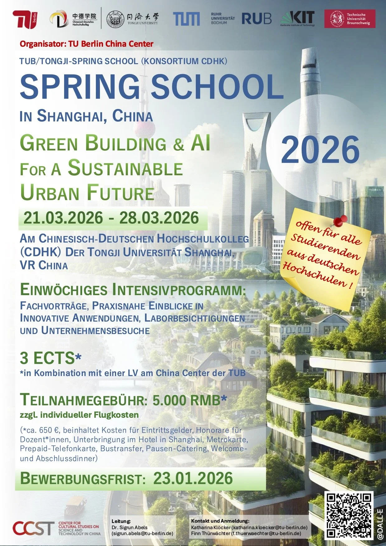 Spring School 2026 – GREEN BUILDING & AI FOR A SUSTAINABLE URBAN FUTURE – Jetzt hier bewerben (Bewerbungsfrist 23.1.26)